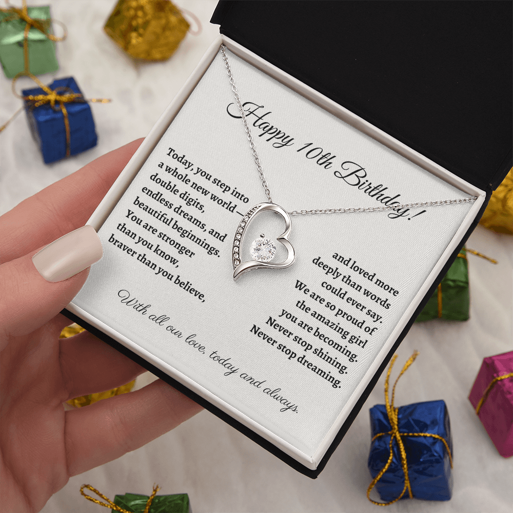 Happy 10th Birthday Necklace โ Double Digits Celebration Gift for Daughter, Granddaughter, Niece โ Meaningful Jewelry for Tween Girl's Milestone