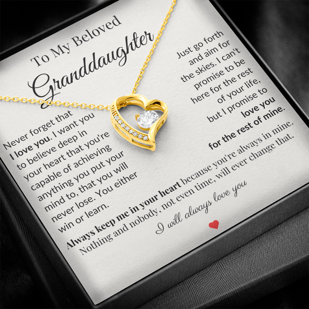 Celebrate the unbreakable bond between a grandmother and her beloved granddaughter with this meaningful necklace. Featuring a beautiful heart pendant and heartfelt message card, this gift is more than just jewelry—it’s a lasting hug, a reminder of strength, love, and unwavering support. Whether it's a birthday, milestone, or just because, let her know she is forever cherished.