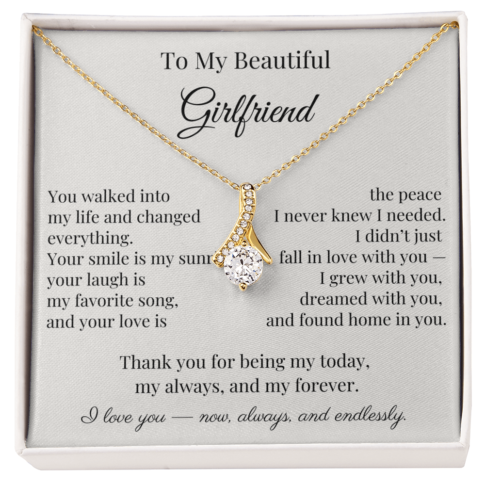 To My Beautiful Girlfriend โ Heartfelt Gift Necklace with Romantic Message Card