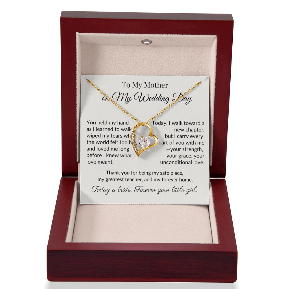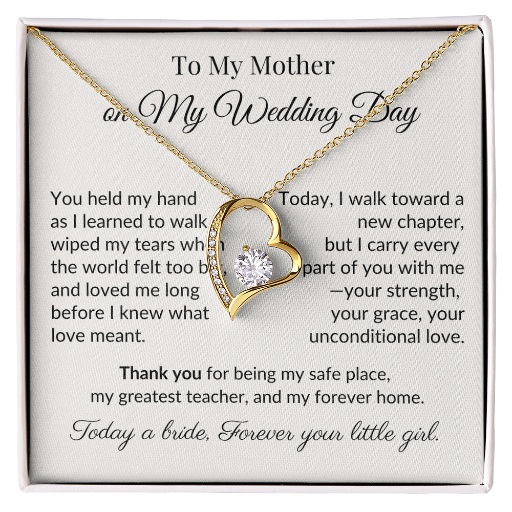 To My Mother on My Wedding Day - Heart Necklace Gift for Mom from Daughter - Bridal Keepsake Jewelry